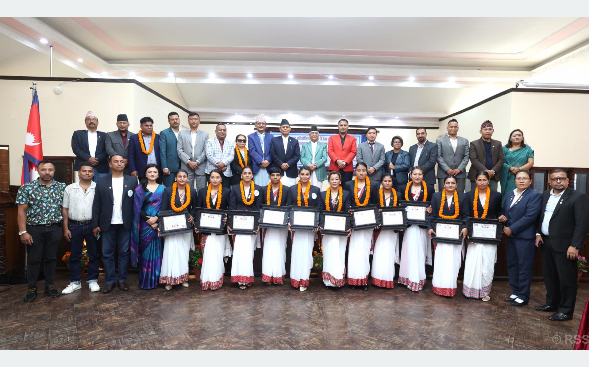 प्रधानमन्त्रीबाट अन्तरराष्ट्रिय पदक विजेता खेलाडी, प्रशिक्षक र व्यवस्थापकलाई पुरस्कार वितरण